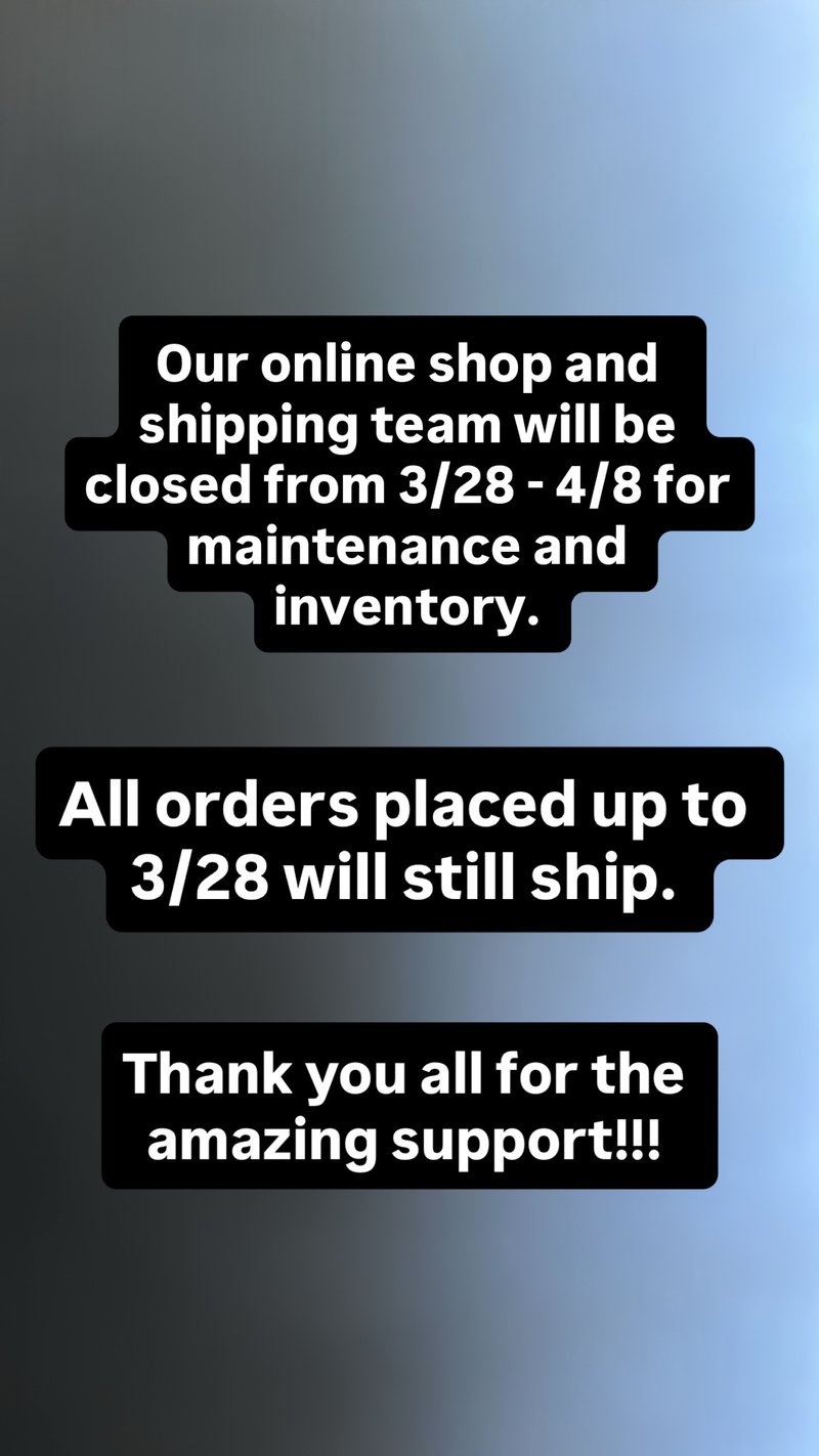ONLINE SHOP WILL BE CLOSED FOR MAINTENANCE FROM 3/28/-4/8.