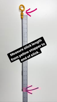 To check your oem stick length please measure from the top of your dipstick stopper to the bottom of your stick. The list of measurements below are for reference only. Take measure from the yellow handle stopper to the end of the stick. (Please see photo #4).